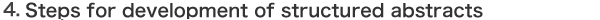 Aoki T. Kozoka shoroku no kisochisiki (Basic understanding in structured abstracts). In: Tsutani K, Yamazaki S, Sakamaki H (eds). EBM no tameno joho senryaku – ebidensu wo tsukuru, tsutaeru, tsukau – (Information strategies for EBM – generate, transfer and use evidence–). Tokyo: Chugai-igakusha; 2000: 82-93 (in Japanese).